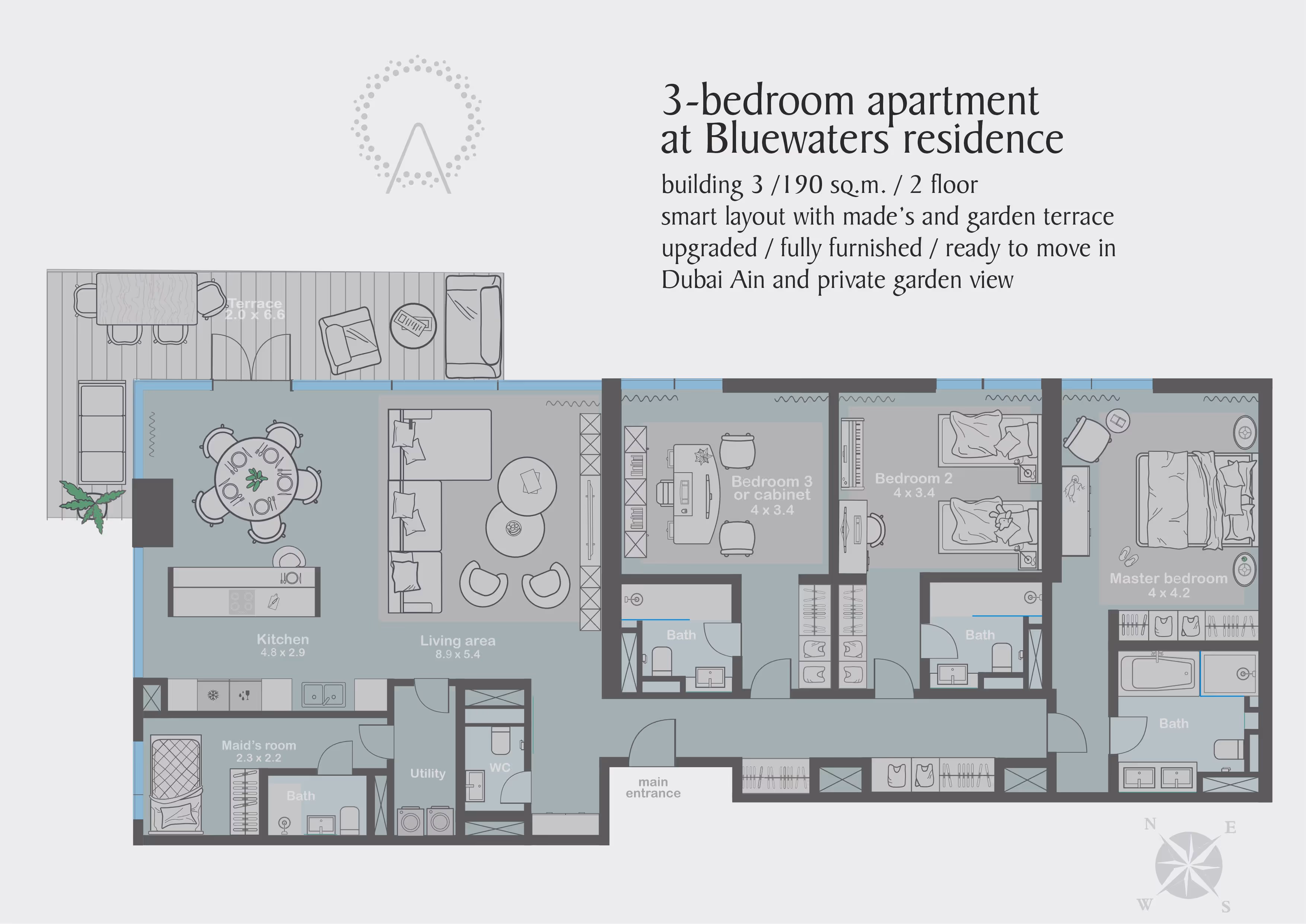 Discover your dream home at Building 3 - Bluewaters Residence. The unit located on a high floor is a spacious, stylish living space boasting a 3+maid bedroom configuration. It is a quiet unit with a corner terrace, providing a perfect place for relaxation. This residential gem spans 2120 SQFT and is fully furnished, ensuring a seamless transition into a luxurious lifestyle. It offers an excellent investment opportunity, priced at AED 13,500,000 with a 5% yield.